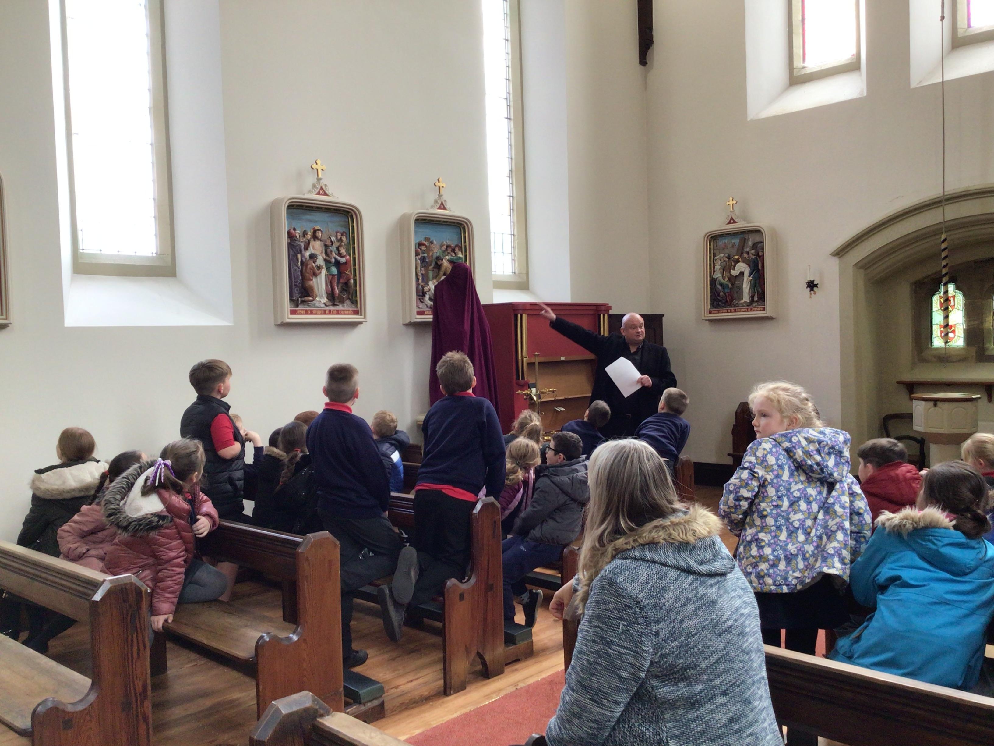 Every year, during Lent, the children are staff visit the Church to go on the pilgrimage of Jesus's final journey through the streets. This year, we were fortunate to have Father Embery to lead our reflections and prayers at each station.